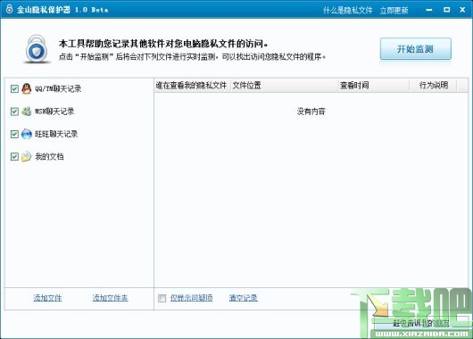 金山隐私保护器是一款检测电脑的小工具,可以帮助您监测个人电脑中隐私文件被访问、查看甚至被偷窃的情况。