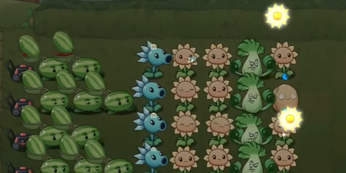 3、利用不同植物的作用快速发育,向日葵可以生产阳光,地雷的消耗很小等特点度过前期。