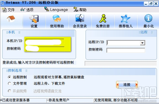 Netman办公版完全免费,可使用屏幕控制和文件管理功能,主要用于远程办公,提高工作效率。连接时被控方会弹出提示,告知计算机处于被控状态,被控方可以随时中断连接。