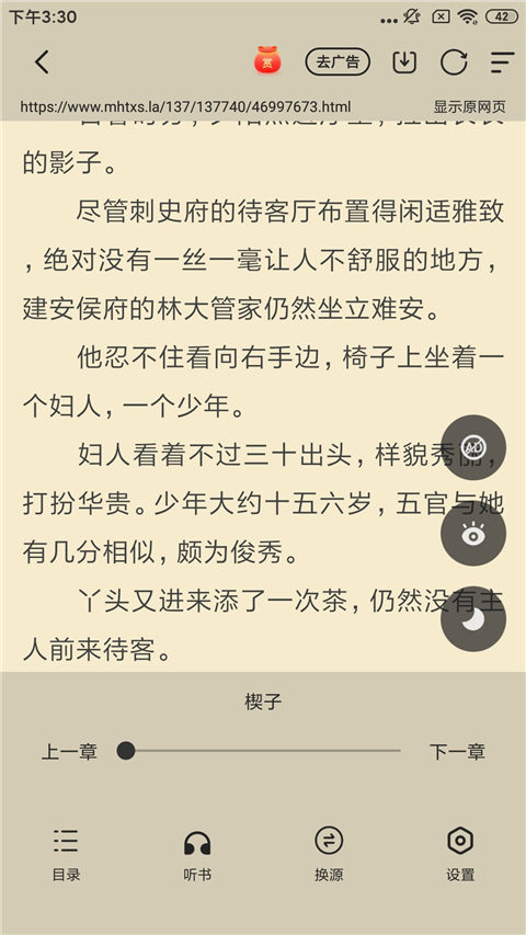 --昼夜阅读模式,可以根据时间调整背景颜色,可有效保护用户的眼睛,小说内容很齐全。