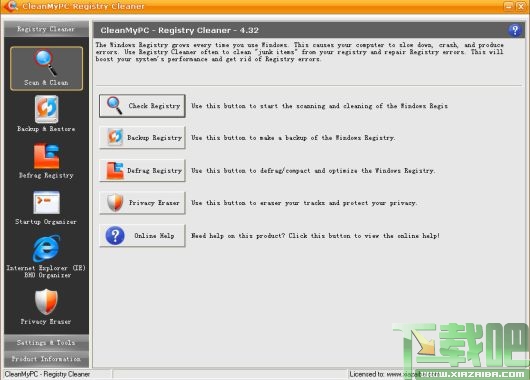 CleanMyPC Registry Cleaner是一款注册表维护工具。它可以有效的清除已经失效的注册表键值,并且优化系统注册表使你的系统运行的更快,它可以使你自定义系统启动时所要 运行的程序,锁定IE主页地址栏、锁定IE窗口标题,它还可以备份和恢复你的注册表文件以保证您有一个健康的系统,还有一点,CleanMyPC Registry Cleaner可以检测并修改因木马或类似黑客软件改变的注册表键值,尽可能降低被黑客攻击的可能性。