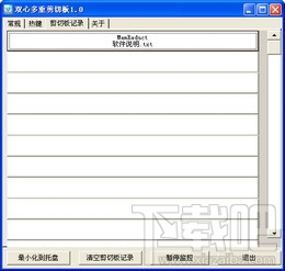 双心多重剪切板是一个windows下增强版的剪切板软件,能让你把多次复制到剪切板的内容合并后正反向粘贴,粘贴时可以加入回车或者TAB键作为间隔。目前版本只能进行文本格式类型复制粘贴。快捷键暂不支持自定义。本程序编写过程中借鉴了源码爱好者-Haisu的代码。注意,定义快捷键的时候尽量避免与软件中已定义的快捷键起冲突。Windows资源管理器功能键:F1:帮助键;F2:重命名键;F3:搜索文件。