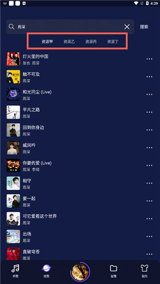4、根据关键词快速找到你需要的歌曲,给你极大的使用方便,内容都很丰富。