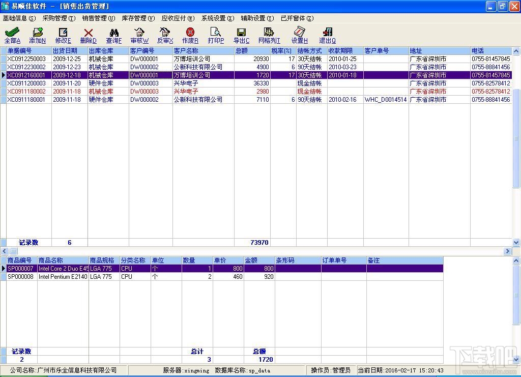 易顺佳免费销售软件适用于中小型企业、工厂、批发部、零售业、商店、电子、服装、机械、贸易、制造、建筑、分销商等进行商品采购、销售、入库、出库、应收应付等管理。主要功能包括商品信息、往来单位信息(包括供应商、客户等信息)、采购申请、采购订单、采购进货、采购退货、采购换货、销售报价、销售订单、销售出货、销售退货、销售换货、借入单、借入归还单、借出单、借出归还单、获赠单、赠送单、领用单、领用归还单、商品调拨、商品报损、商品报溢、其它入库、其它出库、商品盘点、收款单、付款单等,还包括大量的报表统计分析,通过这些管理,使公司的运转一目了然。只要您要进行商品采购、销售、仓库中的某一项管理,这款软件就适合您。