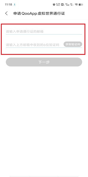 4、输入“QQ邮箱”,获取验证码,并填入,然后点击“下一步”。