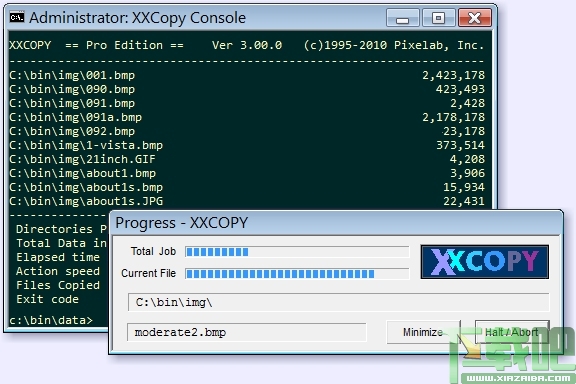 XXCOPY 使用跟 XCOPY 一样的语法,它可以复制、移除、搜寻及列出文件/文件夹,能够完全复制(Clone)可开机磁碟,该软件须于 DOS 底下以语法操作,而所有语法于 DOS 底下启动该程序时,会有列表说明。