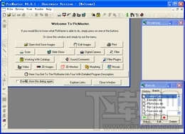 Picmaster可以帮你快速轻松地编辑图形文件。功能相当广泛,包括简单的扫描、使用滤镜、把图形文件放到大型海报目录之中、抓取影音画面、网络摄影机、幻灯片播放、3D浮雕画面。photoshop的滤镜都可以用在这个软件之上,你也可以记录音效指令到图片之中,让你的幻灯片播放更有真实的多媒体效果。一个看图管理工具让你可以以许多方式管理你的图形文件,网络摄影机画面也可以上传,另外还有许多功能等待你去发掘。