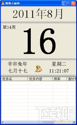 狗狗小闹钟一款任务提醒软件,您可以随时增加、删除有关定时任务,到任务时间就弹出一个提醒窗口。操作简单,没有花哨的功能和画面,只有简单和实用的功能。免安装,解压即可使用。非自解压,不释放任何DLL和其它文件。
