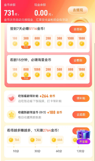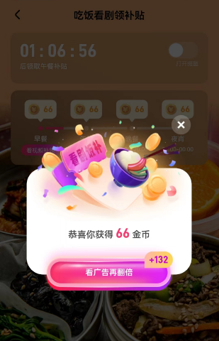 2、观看短剧会有相应的看剧补贴,额度不等的金币,看广告也能额外获得更多金币。