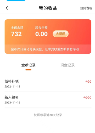 4、最后将所获的金币兑换成收益,然后提现即可完成赚钱。