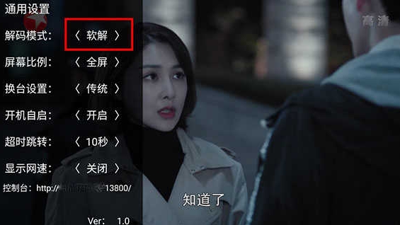 3、所以我们将它切换成“基于FFMPEG软件解码...”,而且该解码模式还可以更加清晰;
