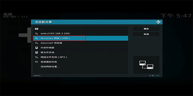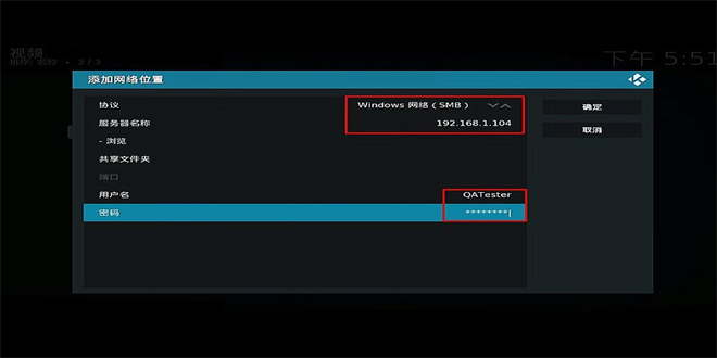 输入NAS协议地址和相应账号密码,找到其中存档电影的文件夹导入播放即可。