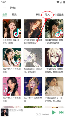 1、进入洛雪音乐首页点击上方的【导入】。