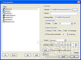 Oolauncher是来自国外的一个小软件,你可以获得对开机自启动项的完全控制,使用它,你可以调整启动时,进程的加载顺序和优先级,或者有些软件会大大的增加系统启动时间,那么可以设置让其延迟加载。而运行后,软件的窗口状态也能够你自己设定。