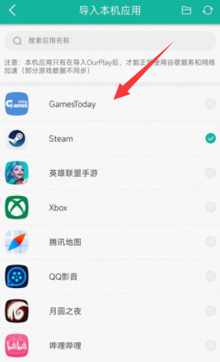 3、添加成功后,就能轻松在ourplay中使用gamestoday。