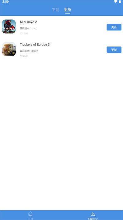 3、出现对应需要更新的游戏以后,点击右侧的更新,然后等待更新安装包结束后,即可完成更新过程。
