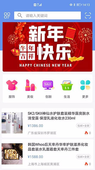 2、进入app首页,可以搜索自己想买的商品或按照分类查看各类商二手商品。