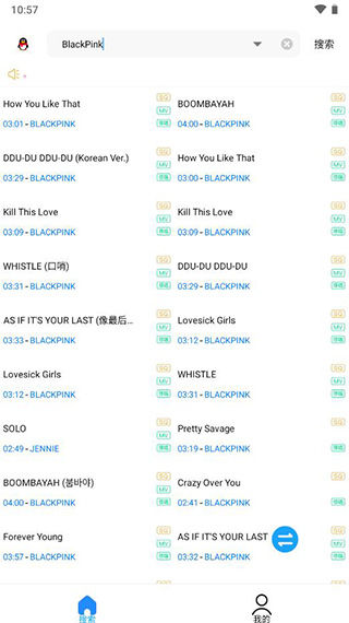 1、可以根据歌曲、关键字、歌手等进行一键搜索,还支持缓存到本地的。