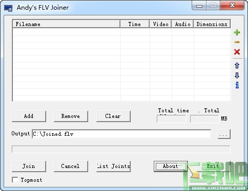 Andy's FLV Joiner是一个简单易用的Flash视频文件合并器。测试通过可以支持 FLV1 , VP6F , H264 Flash视频格式。