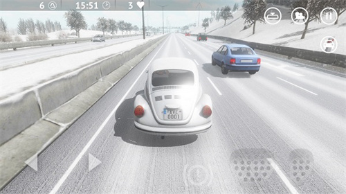 1、游戏以第一人称视角的形式表现,通过方向键控制车辆转向,油门与刹车控制加减速;
