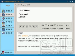 生词测试 通过听写检测生词的掌握程度,并可以进行“看单词--回想词义或音标”“看音标--回忆单词或词义”“看词义--回想单词或音标”练习。 句子学习 将课文分解为一句句配有译文的句子,每句都有真人读音,可自由设置朗读次数和间隔时间。对课文中的重点难点句配有的注释,用户也可以自行为句子添加注释,并可对译文进行重新编辑。