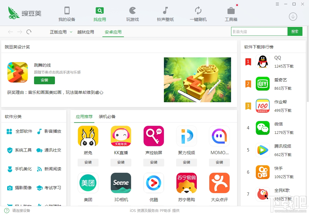4.09 MB/2020-08-17口袋助手是款功能强大的苹果手机软件下载平台。同时支持iPhone,iPad,iTouch,Mac等iOS及Android设备的软件,游戏,壁纸,铃声资源的下载安装和管理工具。口袋助