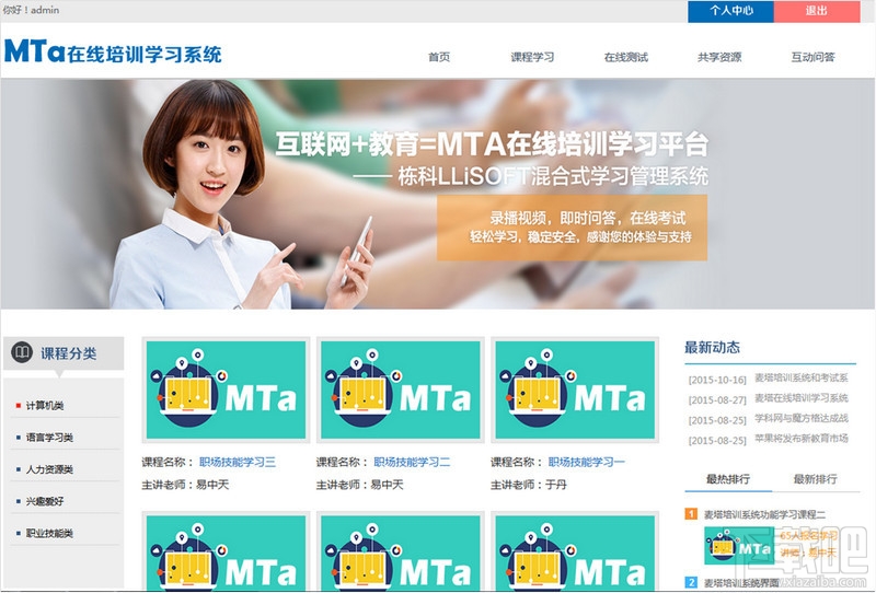 由栋科软件研发的麦塔在线培训学习系统,创新的课程设计体系,章节划分符合院校的教学体系,学生进度记录,随时把握学生学习状态,课后练习测试,补充学习效果考核。下课程可以完美的再线上来安排!学校和培训机构在国家经济转型的大潮中尤为重要,各大院校,培训机构对信息化建设的,数字化校园的需求越来越强烈,利用信息化技术培养复合型人才。无纸化考试系统的出现节约出题,组卷,安排考场,人员安排所消耗的大量时间,人力,场地成本;网络学习平台的出现,完善了学校对信息化建设的布局。