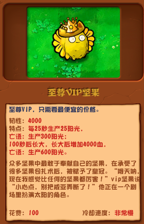 威力:100秒后长大,长大后增加4000血,生产600阳光。
