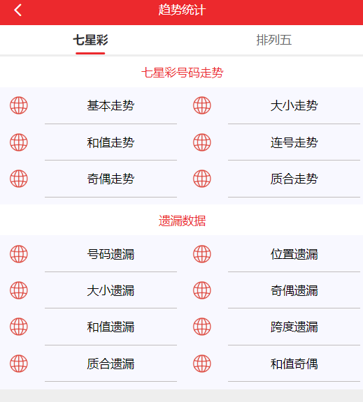 3、用户可以在趋势统计中找到【七星彩】【排列五】,查看最新的走势图。