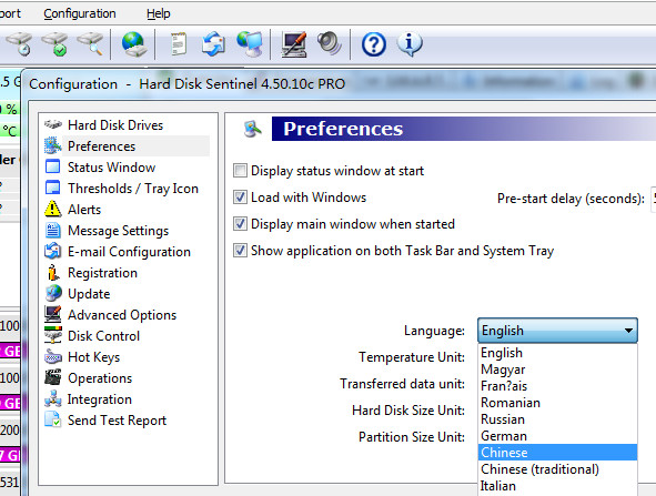 Hard Disk Sentinel Professional设置简体中文的方法: