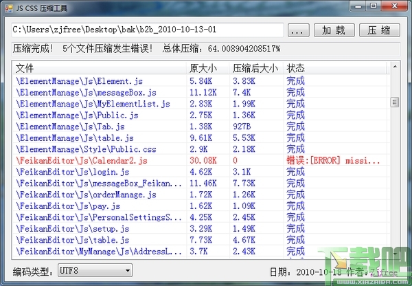 JS CSS压缩工具主要功能:将指定目录包含的所有JS或CSS压缩,压缩生成的文件存储在“_bak”目录下!使用的压缩算法为:YUI Compressor for .Net