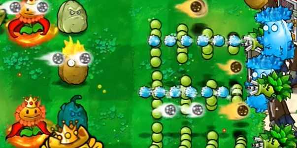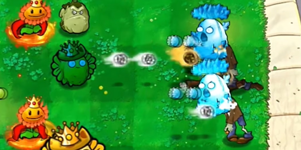 非常搞的输出能力,会向我方植物射出大范围的豌豆,需要使用坚果抵挡。