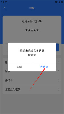2、想要提现需要进行实名认证,点击【去认证】。