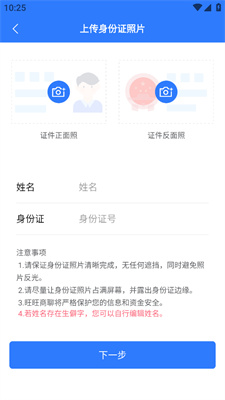 3、上传身份信息然后【下一步】。