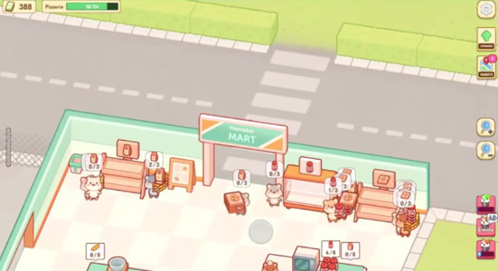 建造发展:需要不断的建设各种餐具和设备。建议玩家先招募员工,然后安排仓鼠员工进行自动化生产。实现自动化后,即使离线也能获得收益。
