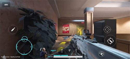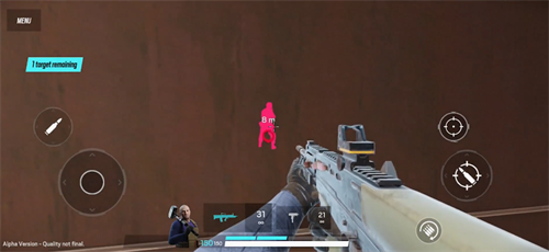 4、游戏如同其他FPS游戏一样,通过划动屏幕可以调整准星,按住开火键进行射击;