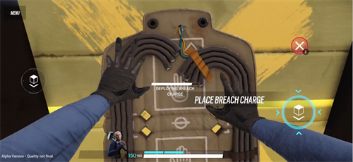 3、到达可以进行爆破的位置后,可以为墙体贴上破片并进行爆破;