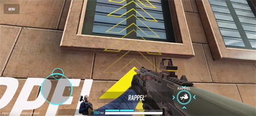 2、玩家在靠近墙壁后,可以通过点击下方挂绳按键进行爬墙;