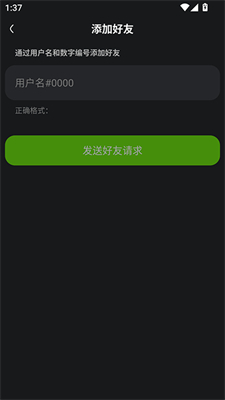 2、输入用户名或数字编号点击【发送好友请求】即可。