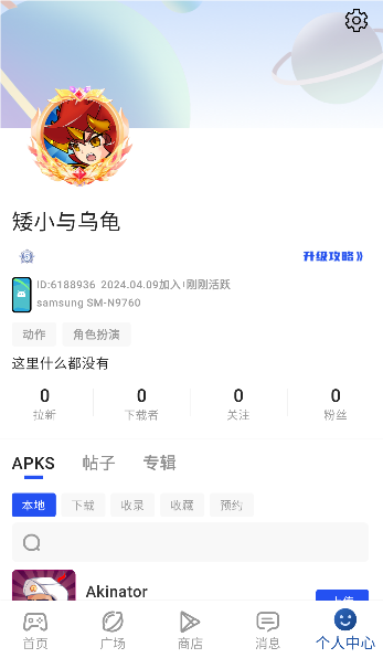 1、登录APKHUB,然后点击右下角【个人中心】,进入个人信息页面。