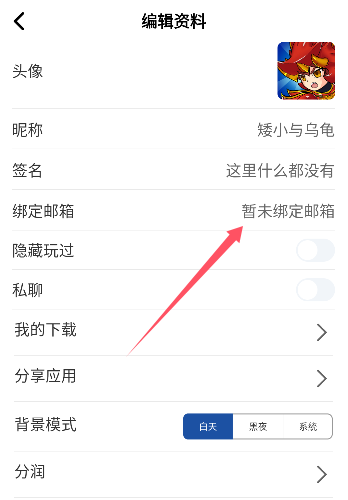 3、在设置页面找到邮箱,点击绑定输入并完成验证即可。