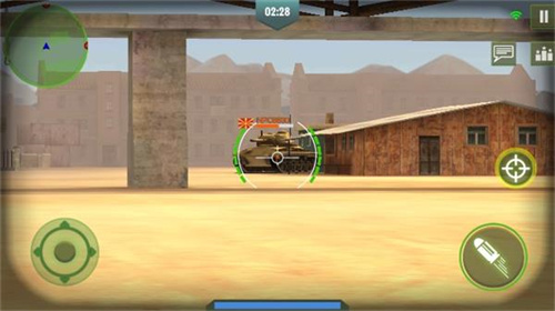 1、玩家需要通过虚拟摇杆对坦克进行驾驶,点击瞄准按钮即可进入瞄准模式进行精确瞄准;