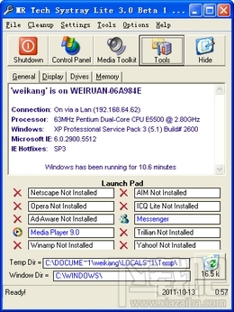 MR Tech Systray是一个多功能的桌面小工具,可以快速关机、重新开机、注销、帮你清除垃圾文件、组织管理你的MP3文件,还可以显示IE版本显示、硬盘信息、储存和打印屏幕、更换桌面、全部视窗最小化等等功能。