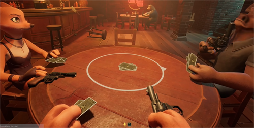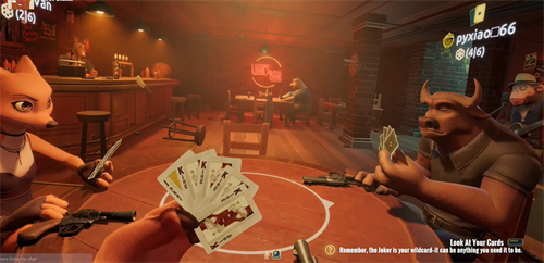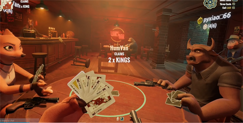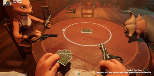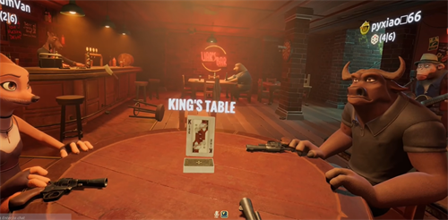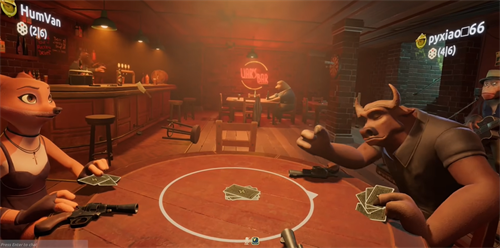 6、玩家之间轮流出牌质疑开枪,直到桌上仅剩最后一名玩家后游戏结束。