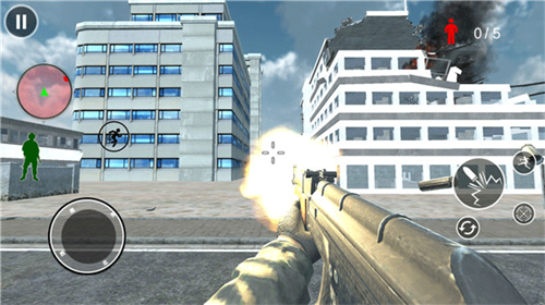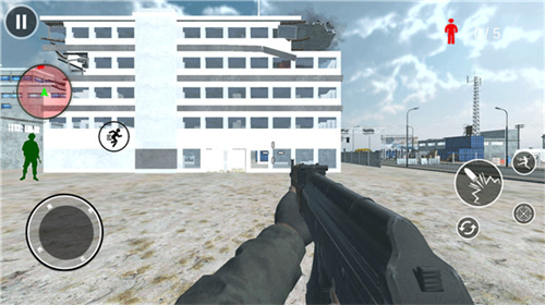 3、关卡中以第一人称视角的形式展开,玩家需要通过虚拟摇杆控制角色移动,划动屏幕进行瞄准,点击按键进行射击;