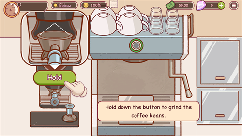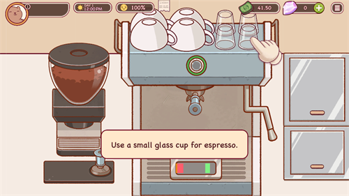 1、进入游戏后,玩家首先需要通过咖啡机为客人制作所点单的对应咖啡;