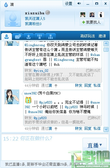 滴Dii与QQ和MSN聊天方式完全不同。通过广播式的聊天,获得大量的听众,让你在这里中一呼百应。一个人用户一群听众粉丝的时代来了,看看自己的影响力,比比大家的听众数。玩滴吧,实现我们的明星梦!