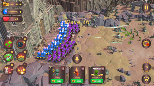 3、玩家的部队会自动对敌人进行攻击,敌人会以波次的形式发起进攻,随着波次的提升敌人会不断增强;