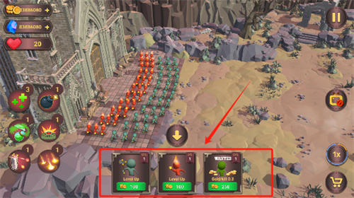 2、玩家可以通过消耗金币的方式对下方的兵种进行升级,从而获取更强的战斗力;