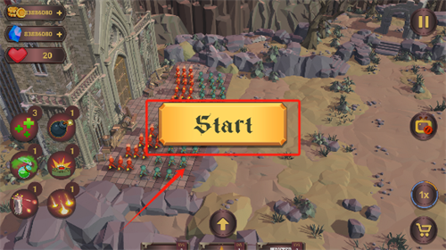 1、进入游戏后,点击画面中央的start即可正式开始战斗;